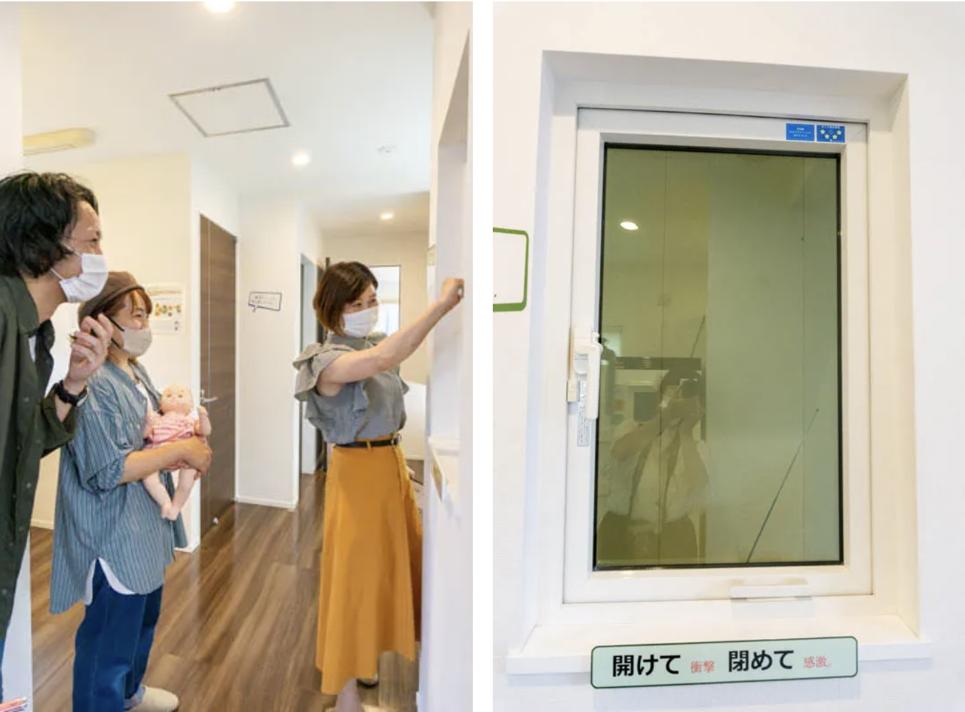 気密性にこだわった窓の見本もあるんですが、この窓を開けると実は…。