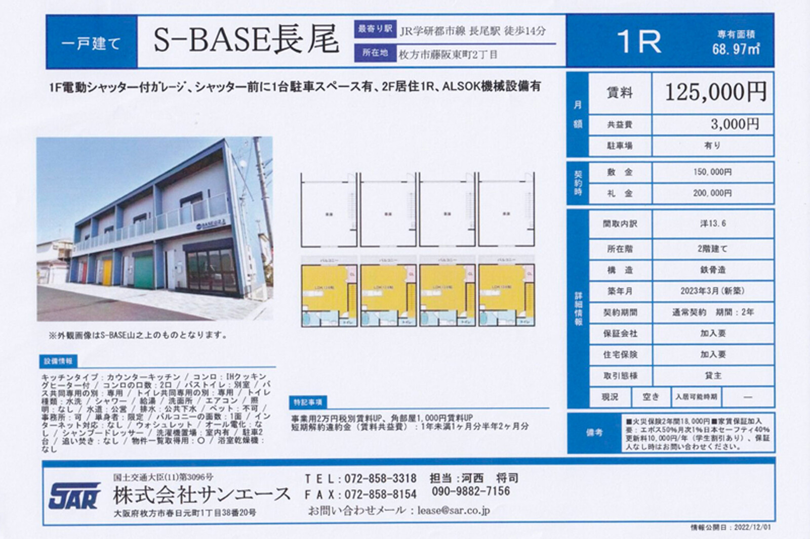 ◆「S-BASE長尾」の物件概要