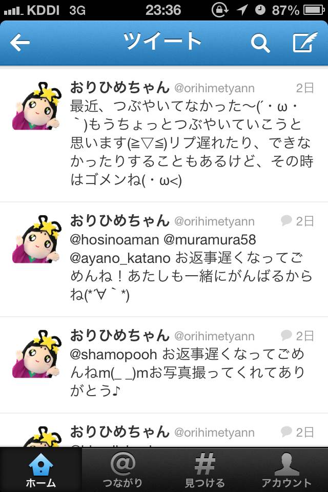 Twitterでのおりひめちゃんのつぶやきを見てみましょう。