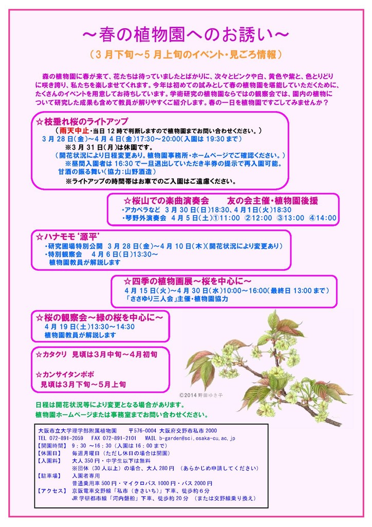 ⇒特別観察会 4月6日(日)13:30〜(植物園教員が解説)