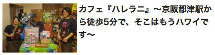 京阪電車の郡津駅から交野2中方面へ歩いて5分くらいのところにあるハワイアンカフェなハレラニさん。