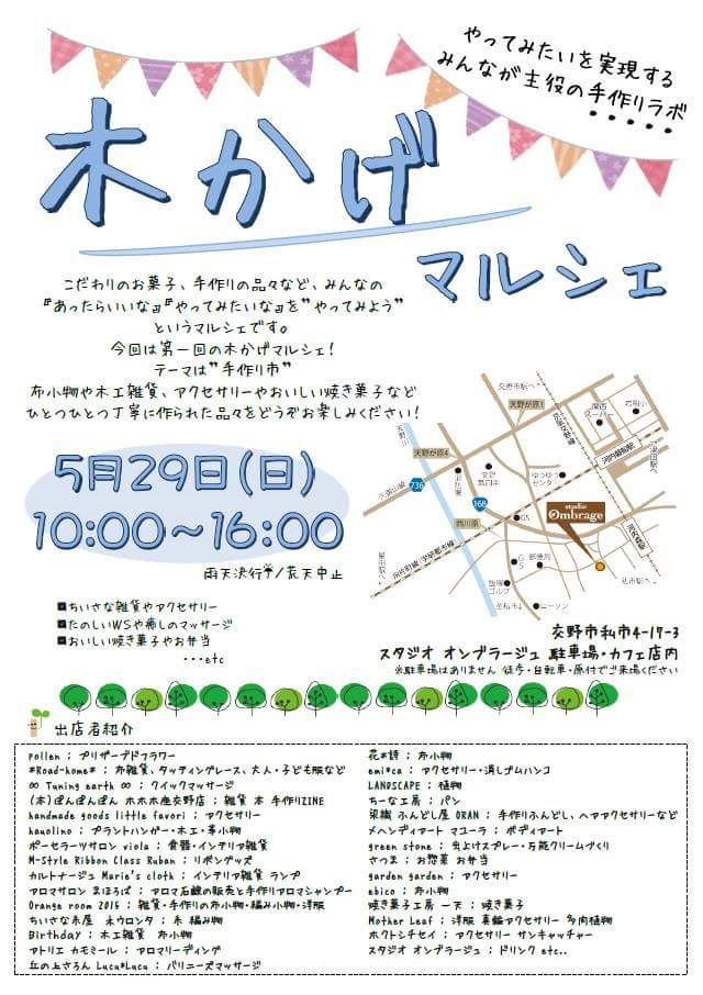 地域のお店などがいっぱい!『木かげマルシェ』が開催されるみたい!~5/29(日)私市のオンブラージュのところ~