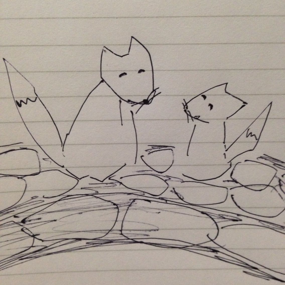 むかしむかし、石橋の近くに仲むつまじく寄り添うきつねの親子が暮らしていました。