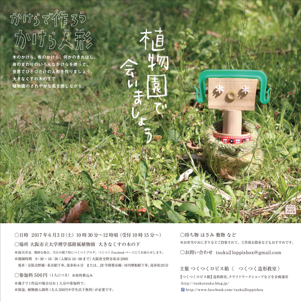 6月3日(土)は植物園にかけら人形を作りにレッツゴーですね!