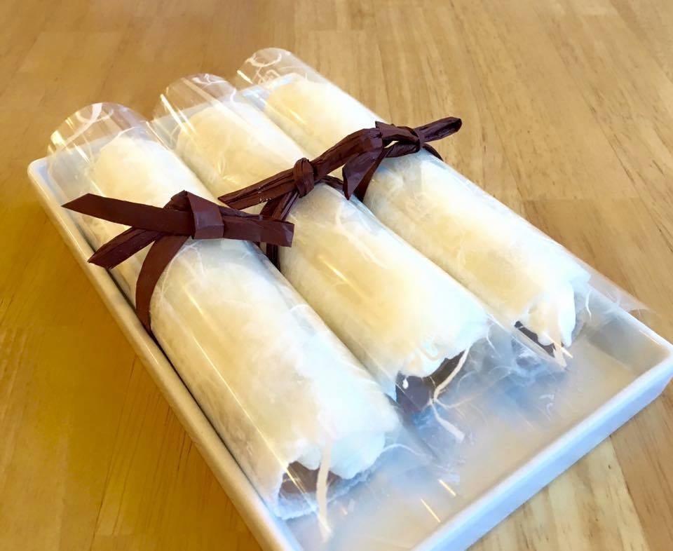 大粒のピオーネを贅沢に3粒入った筒型の大福。