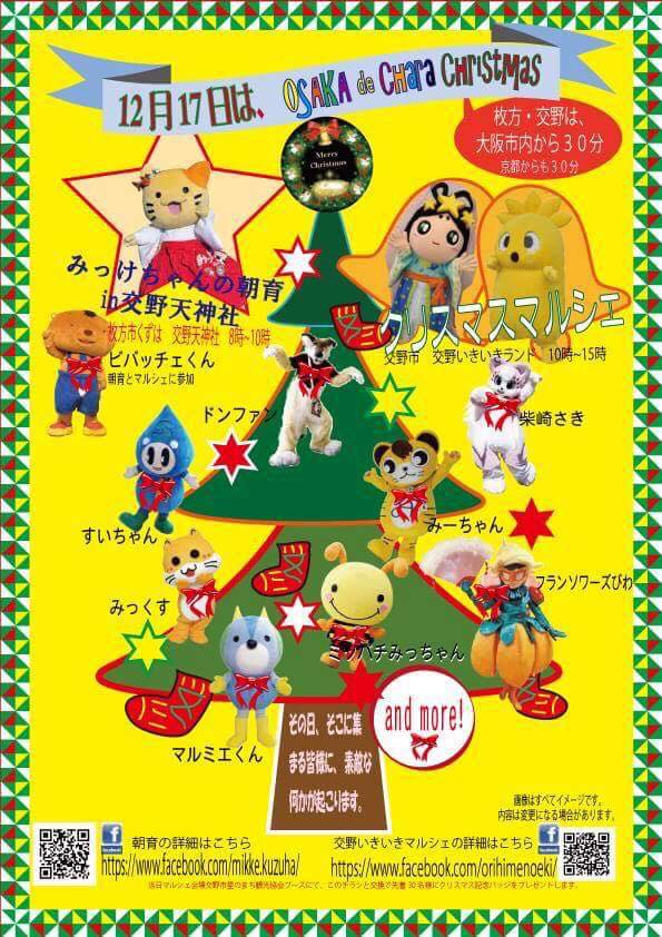 クリスマスマルシェということで、たくさんのゆるキャラも交野にやってくるみたいです。