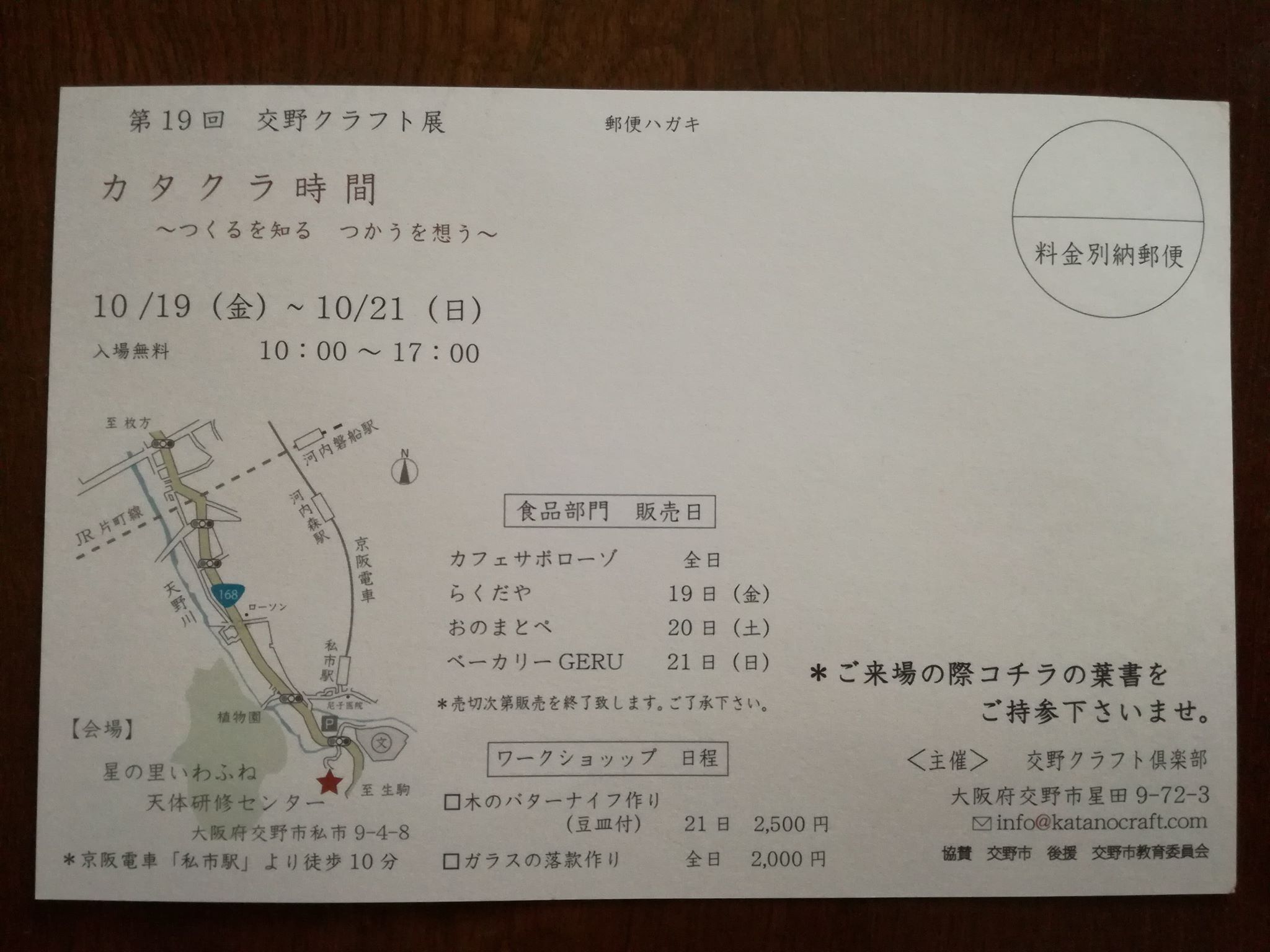 交野クラフト展は、10月19日(金)〜21日(日)までやってます。