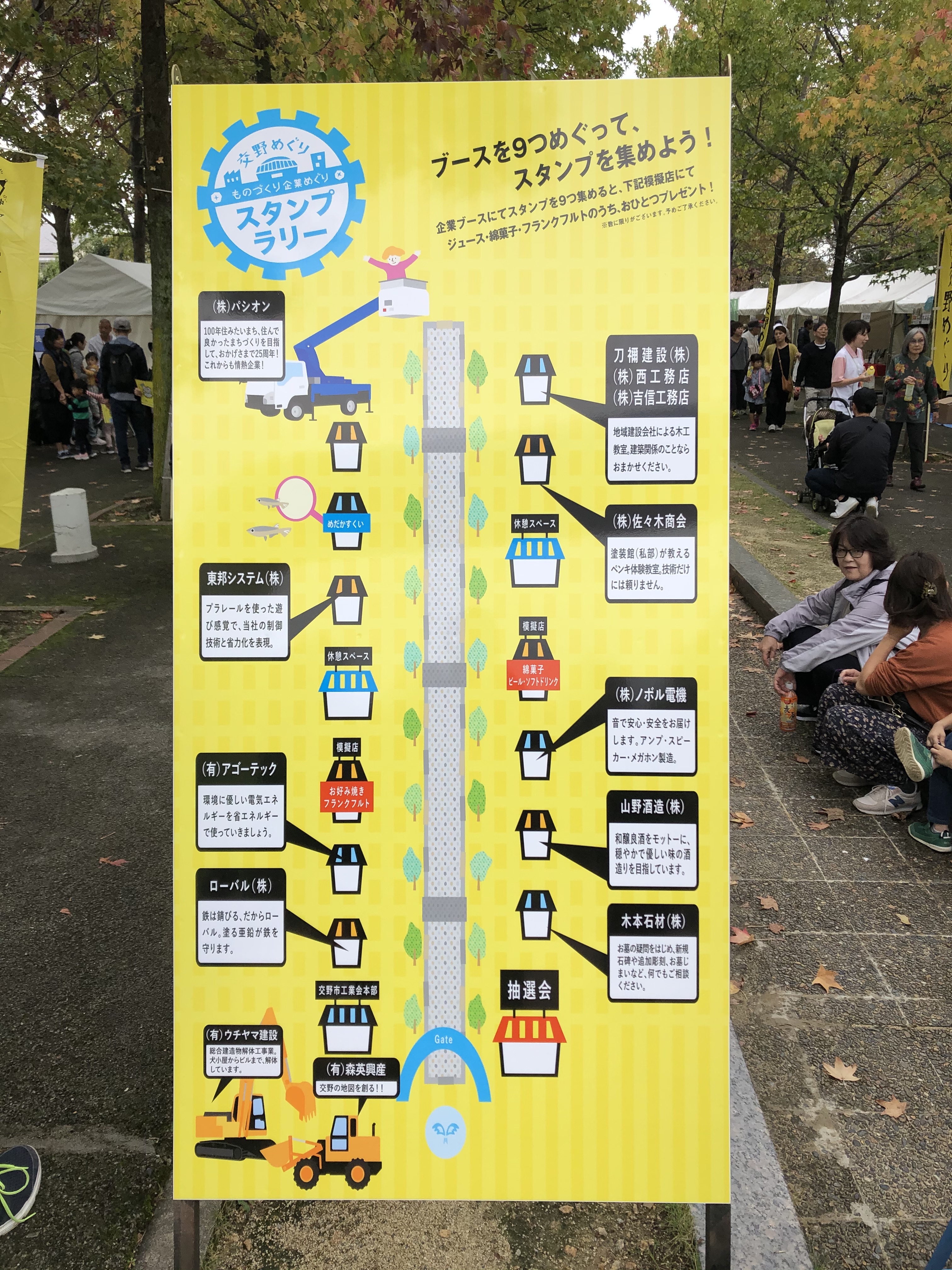 高所作業車に乗ってみることができる体験撮影会とか、飲食ブースとか製品説明とか各社さんの地元の企業をもっと身近に知ってもらいたい!なんていうほっこりした暖かい印象を受けるスポットです。