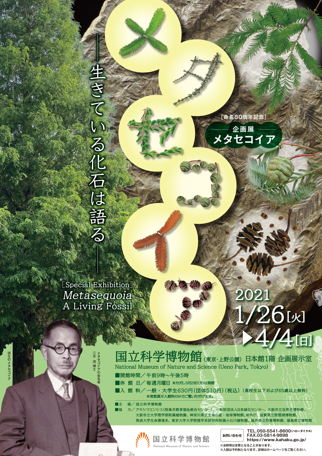 当園の「化石の森」は,三代目園長であった故三木茂先生が中心となって復元したもので,三木先生もまた,古植物学を専門とされていました。ご存知の方も多いかもしれませんが,メタセコイアという名前は,岐阜県土岐市から見つかった約1100万年前の針葉樹の化石に対し,1941年に三木先生が名付けたものです。その後,生きたメタセコイアが中国で見つかり,メタセコイアは「生きた化石」として一躍有名になりました。〜大阪市立大学理学部附属植物園・公式ページより〜
