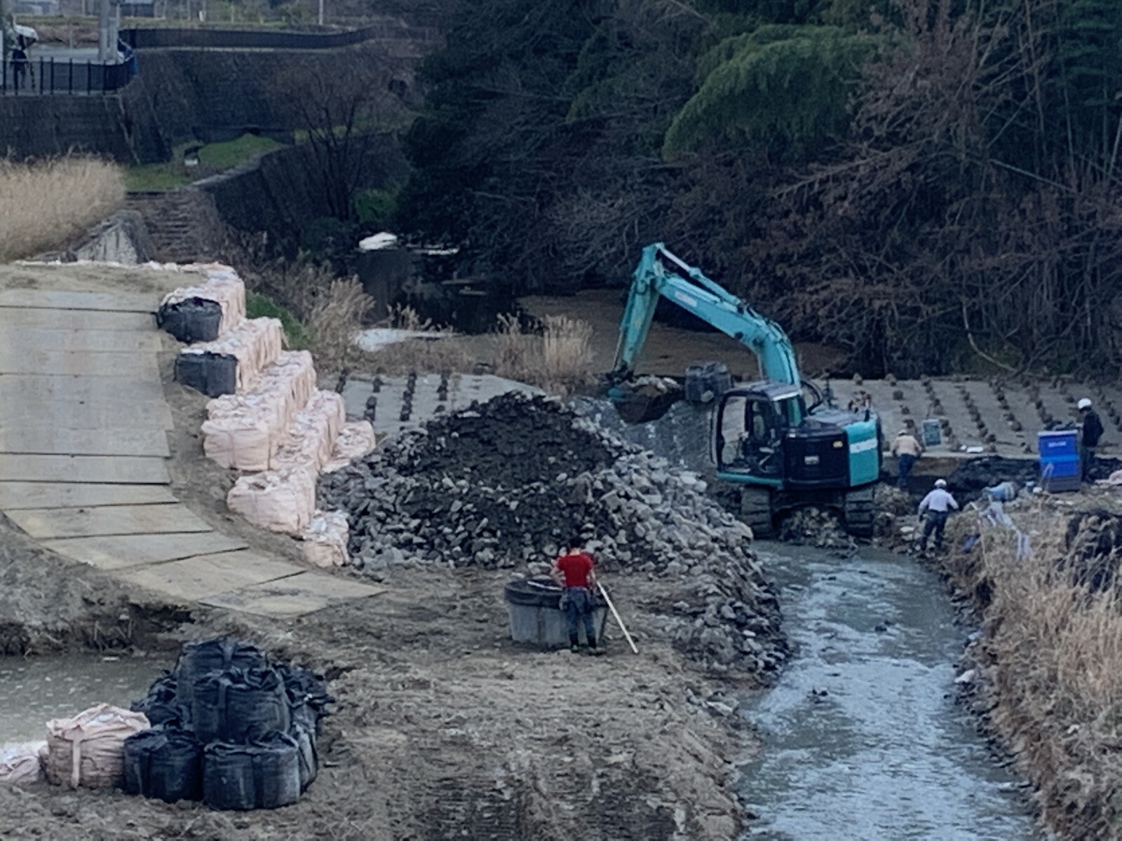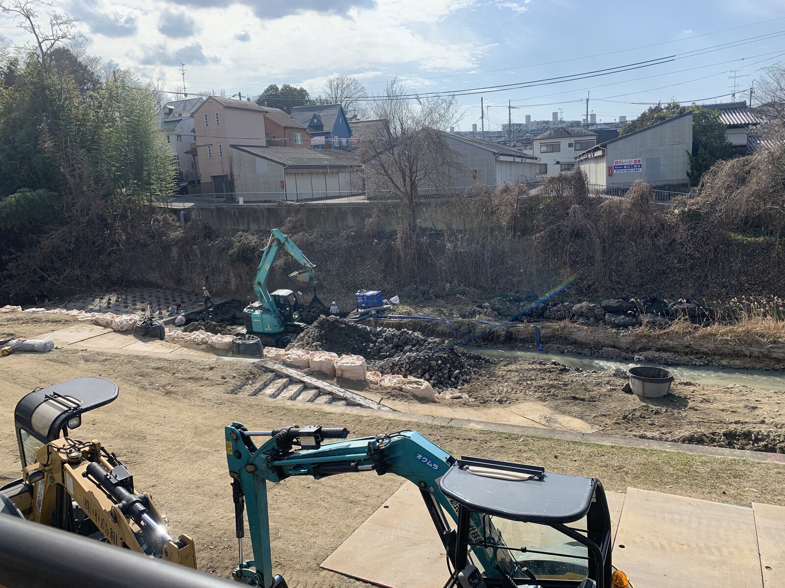 天野川、護岸工事してる!〜歩行者はちょびっと迂回するみたい〜