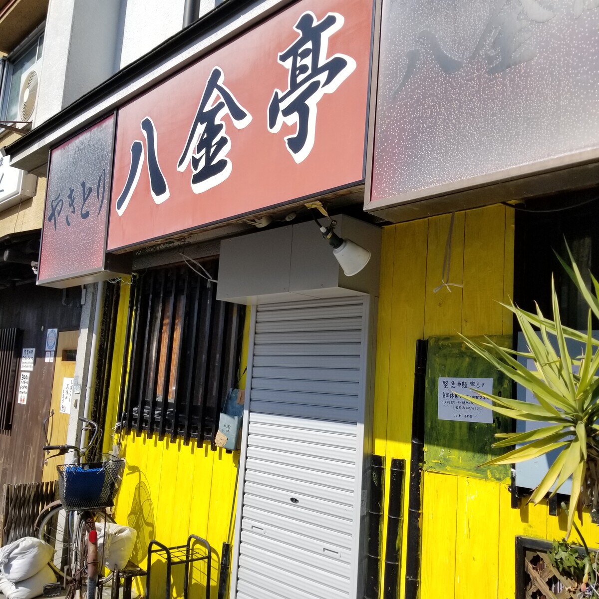 お隣の焼き鳥屋さん「八金亭」にも張り紙が貼ってあったのでチェック。