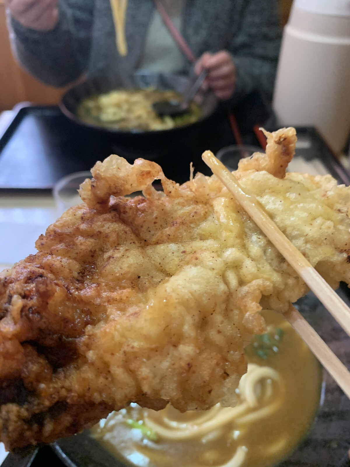 花鶴のカレーうどんでランチ♪鶏天のボリュームがすごい!