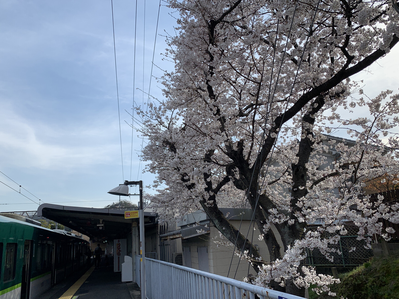 また、散りぎわの頃になりますと、ホーム一面に花びらが舞うのです。