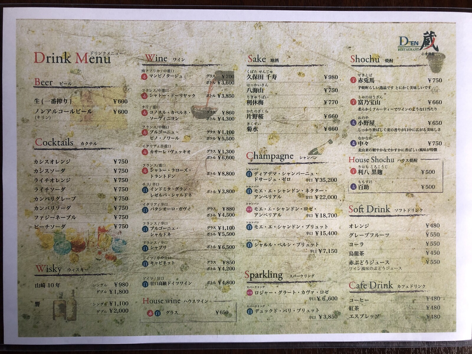 ドリンクメニュー
