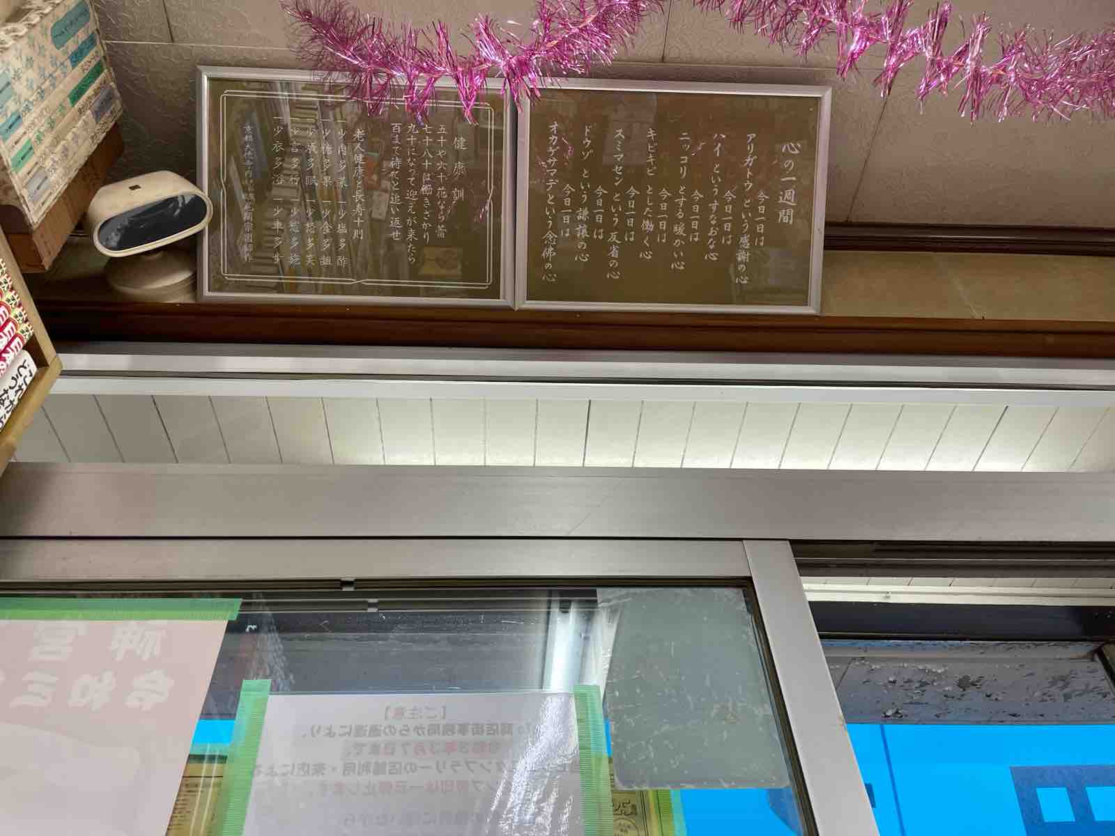 有名な健康訓や、「心の一週間」という文章が飾られていました。