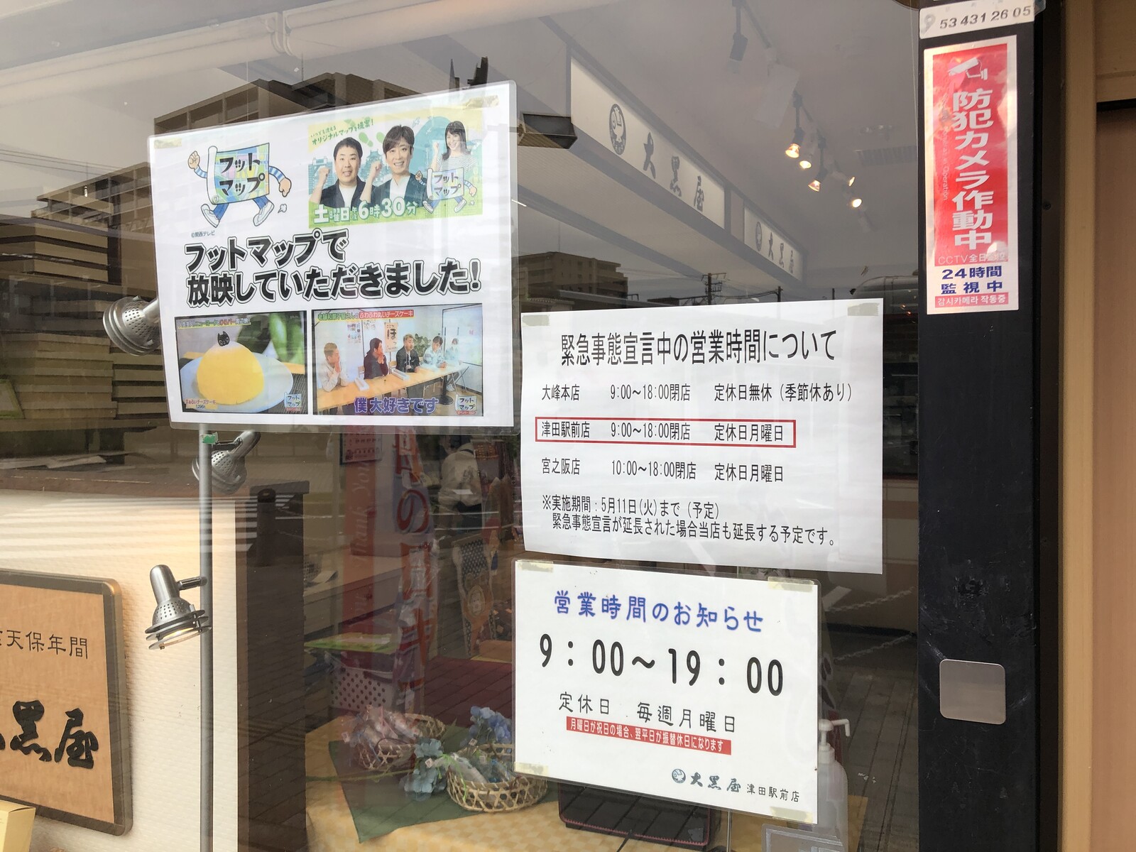 大黒屋さんは天保年間に創業された和菓子屋さんでこちら津田駅前店以外に、枚方市大峰元町(藤坂とか山田池公園方面)の大峰本店と京阪電車宮之阪駅の近くにある宮之阪店と枚方市内で3店舗展開されています。