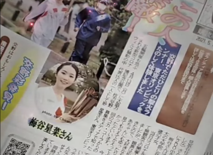 なんと交野市でおひとり!聖火ランナーで4月13日に走ってこられたそうです。