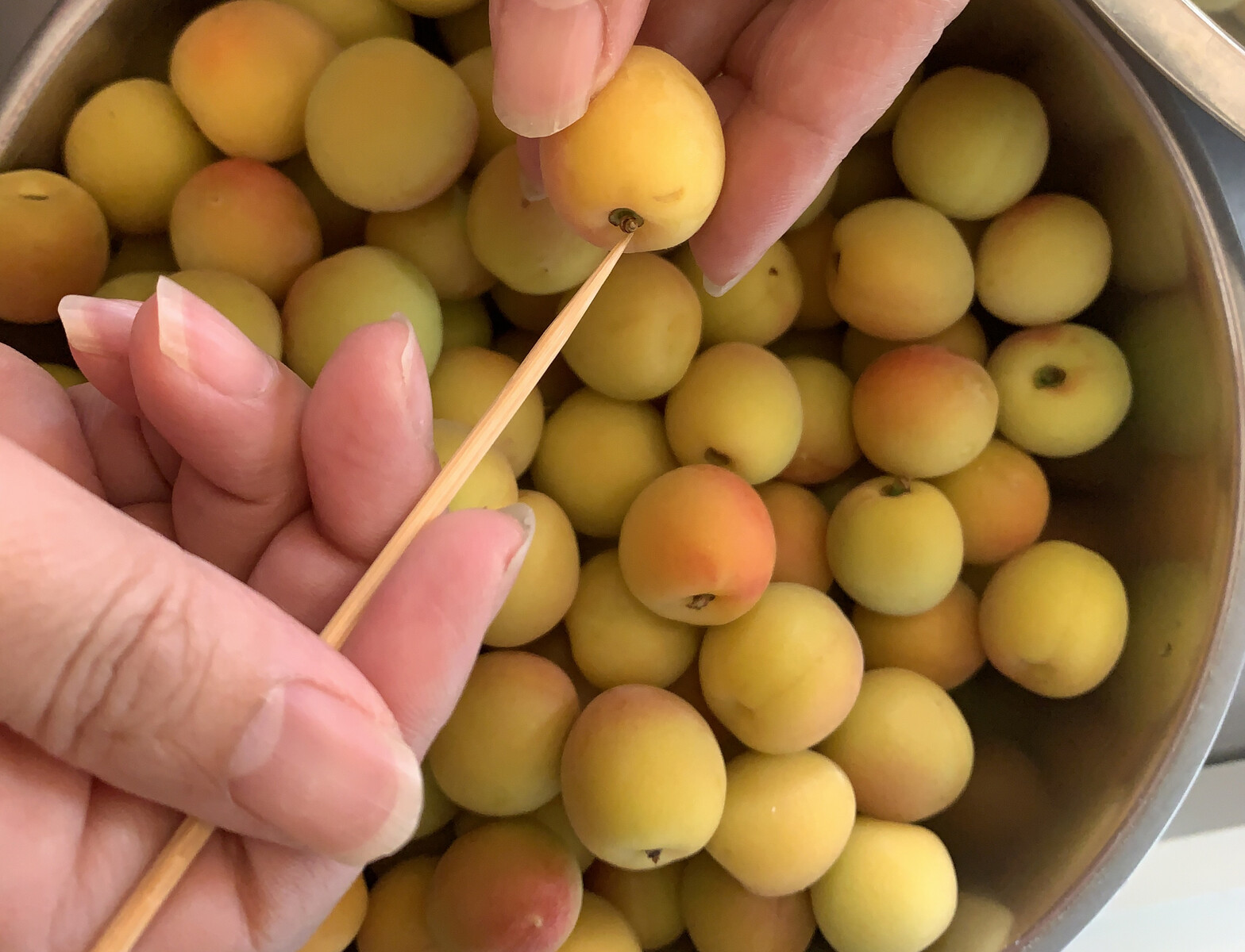 梅のヘタをとったら、