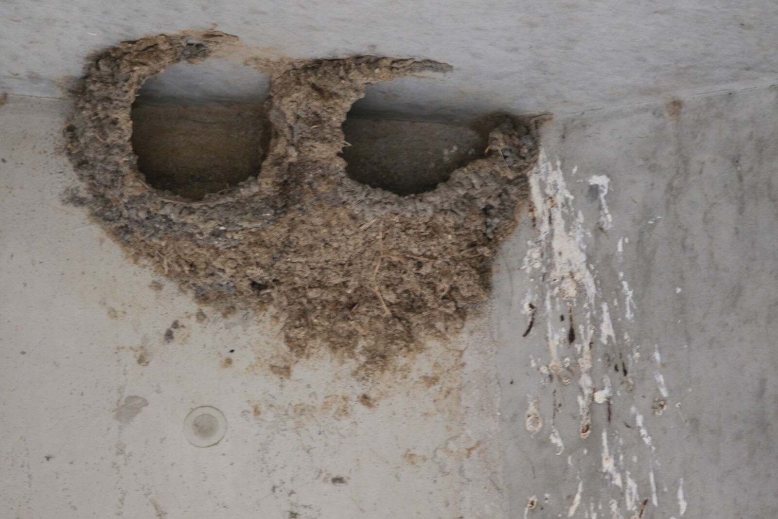 普段、街中で見かけるツバメの巣とはなんというかワイルドな感じで形が違って見えます。