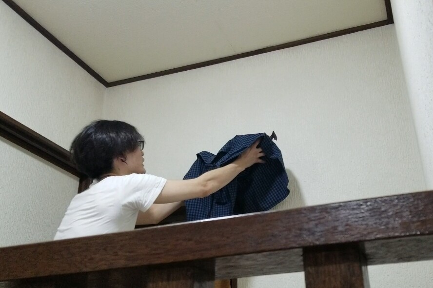 時たまエアコンの上に乗ってぷるぷる震えていたりだんだんかわいそうにに思えてきて、より早く逃がしてあげなきゃ!と焦ってきたのと同時にコウモリさんが階段の方へ行ってしまいさらに焦るふたり。