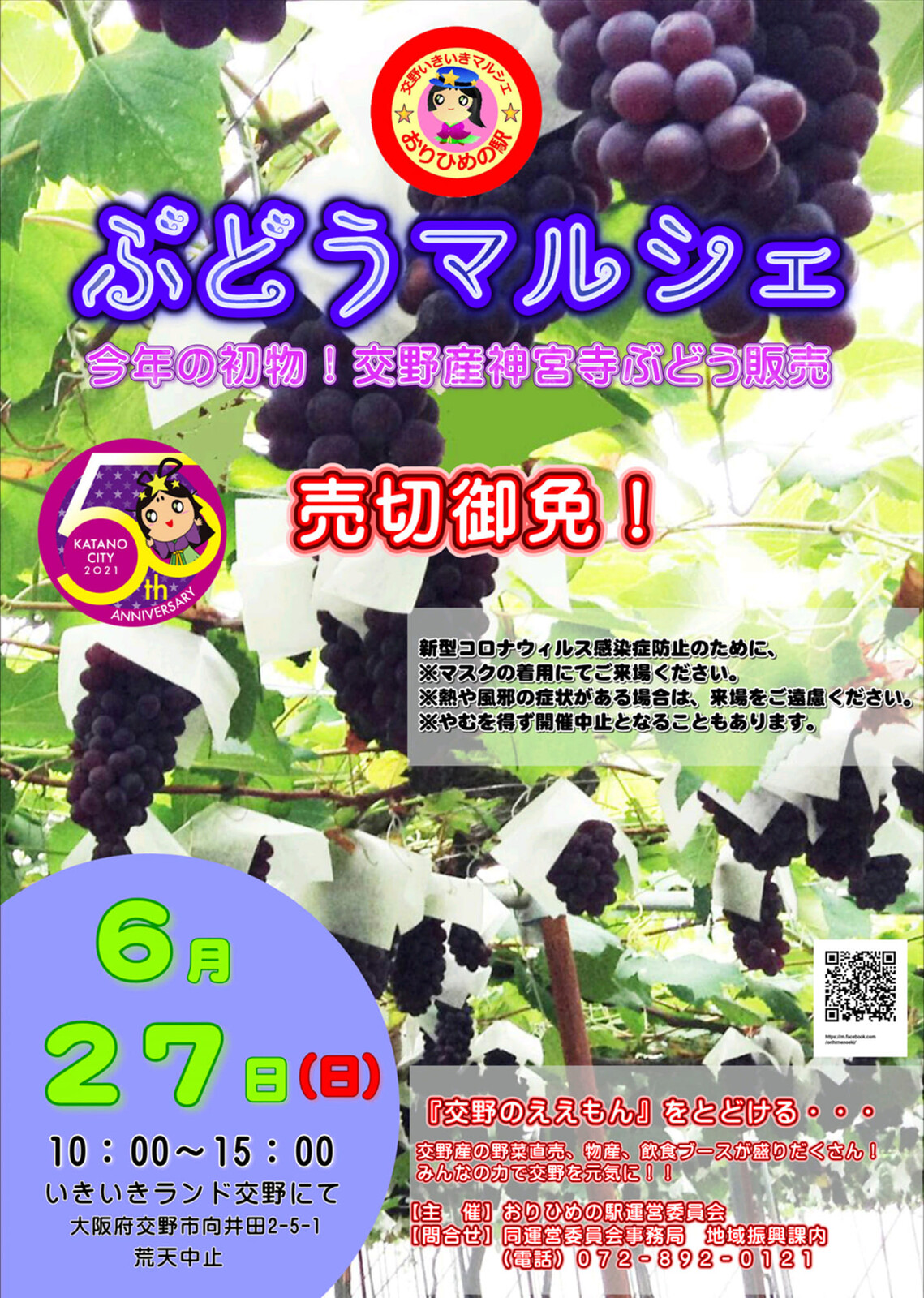今回はぶどうマルシェということで、こないだ直売所がオープンし始めた交野市神宮寺のぶどう畑の農家さんからフレッシュなぶどうがここでも購入できるというチラシに書いてあるように売切御免!な企画もあります。