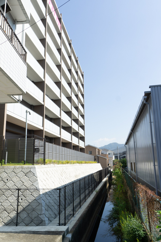 ライラ交野中央を横から見ると、万が一川が氾濫しても問題ないように少し高くなっています!