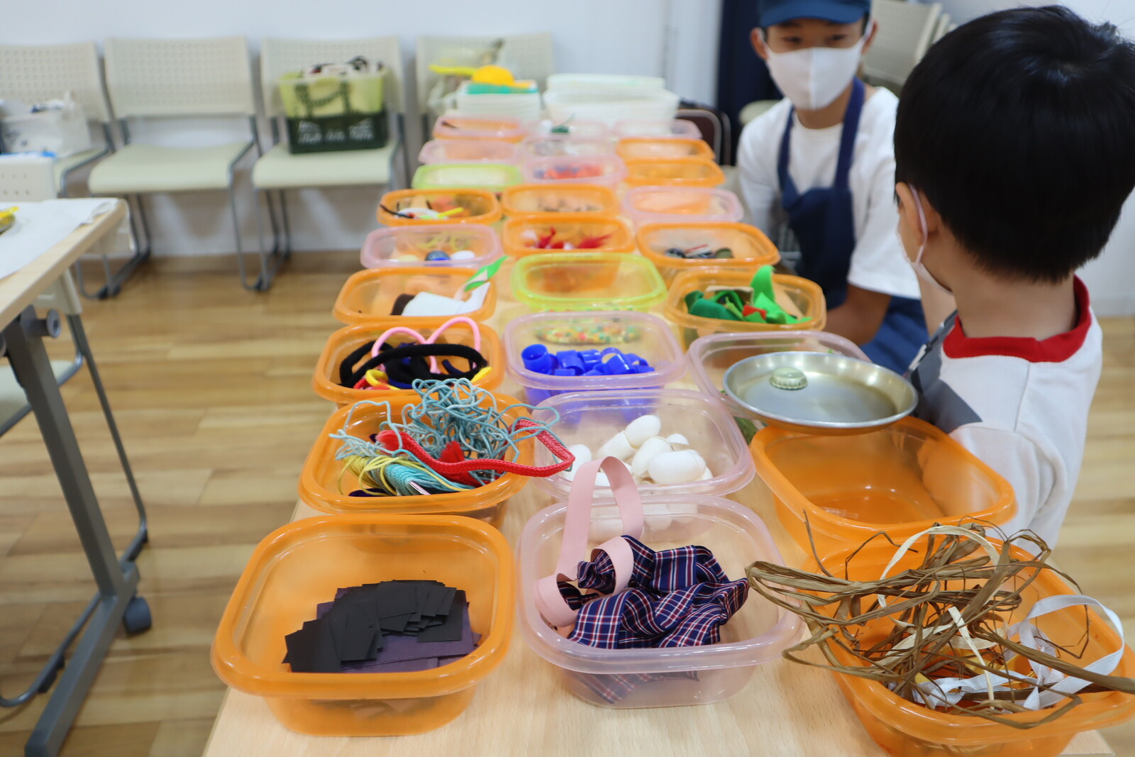 ワークショップは、このたくさんの種類の素材から