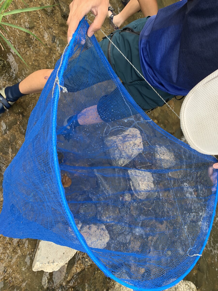 もんどりセッティング完了後は、網でも捕りますよ〜