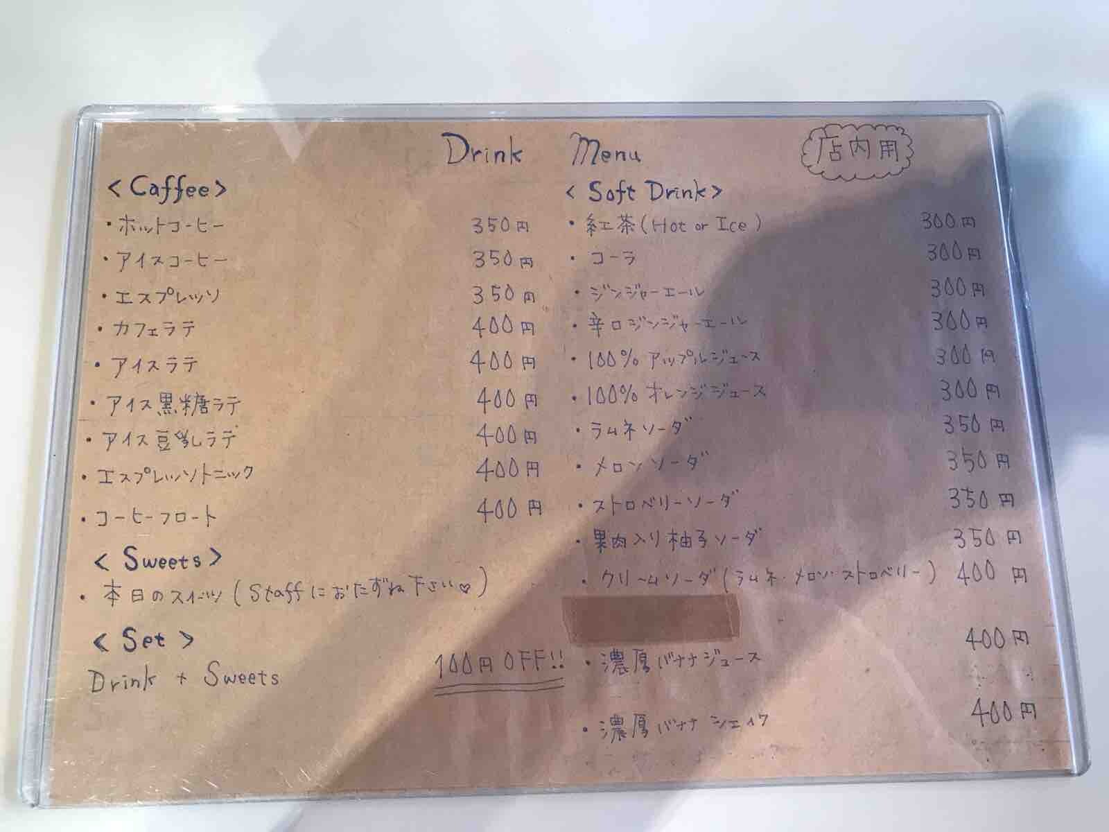 店内メニューは、こちら