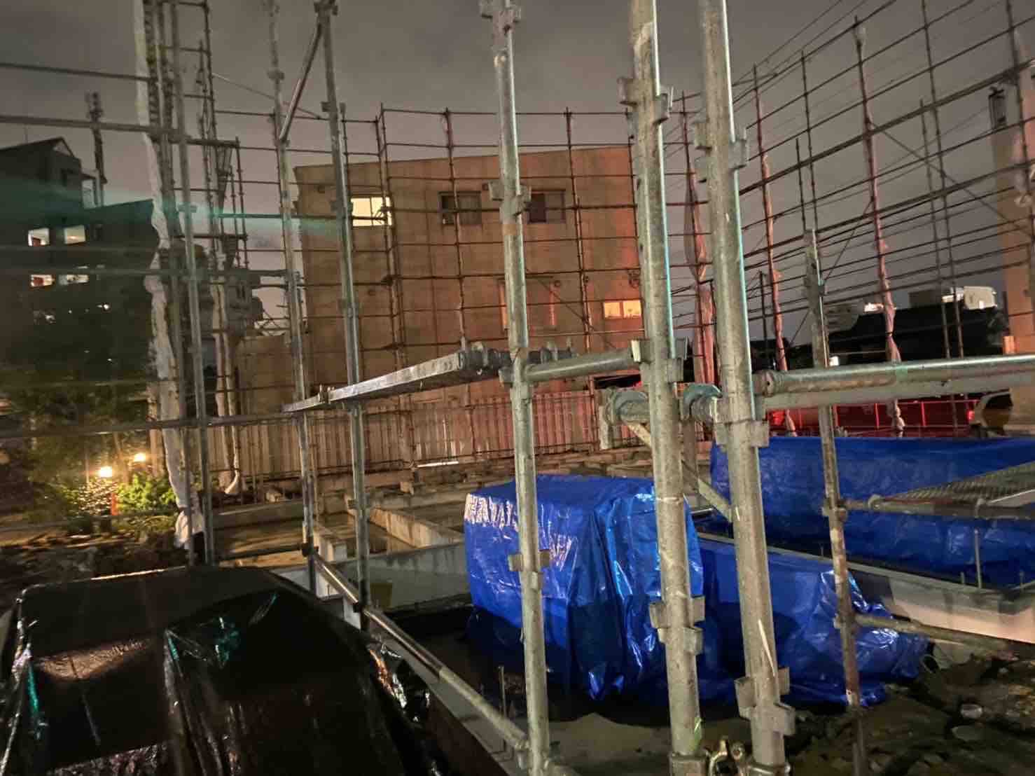 正確には建物を作るための、工事の方々の作業足場などに利用したりする骨組みだと思われますが、見た目として工事がめちゃくちゃ進んでいるのでびっくりしてしまいました。
