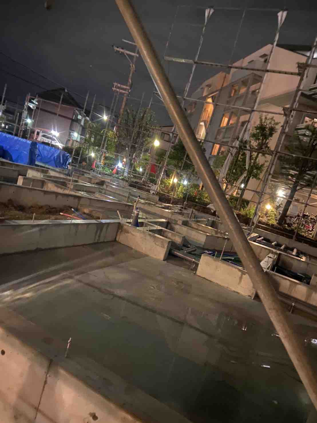 建物の土台になる部分が綺麗にコンクリートで固められ、本格的に建物を建てる準備バッチリ!という状況。