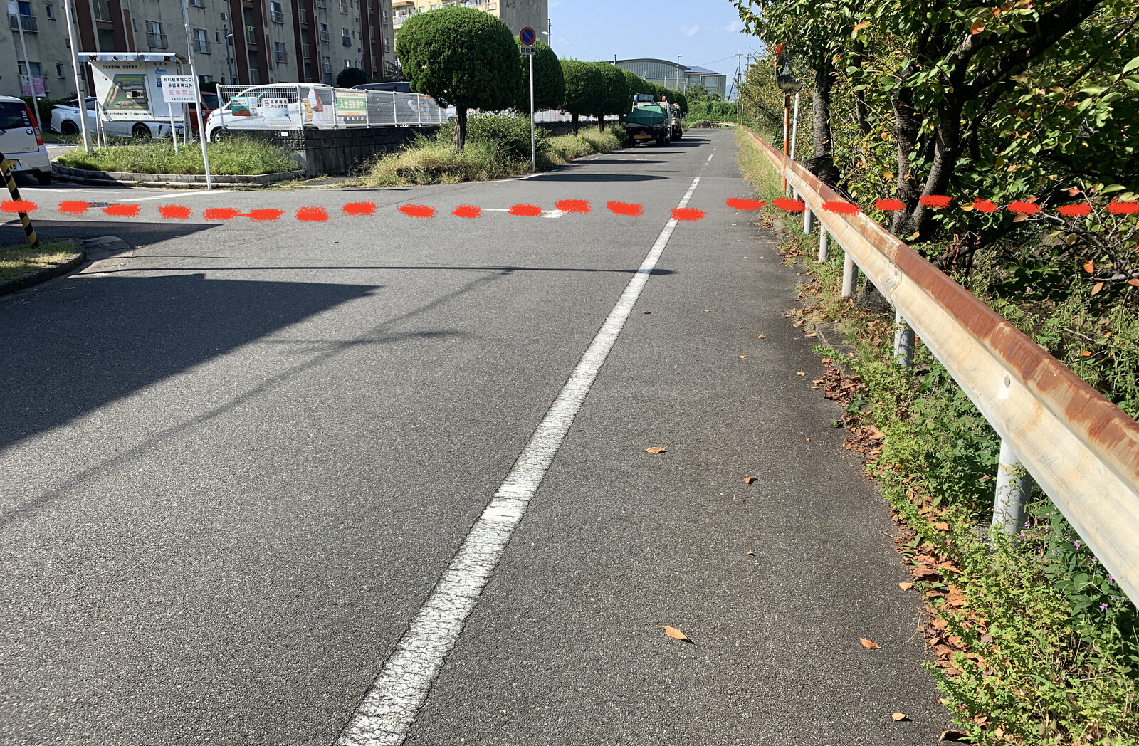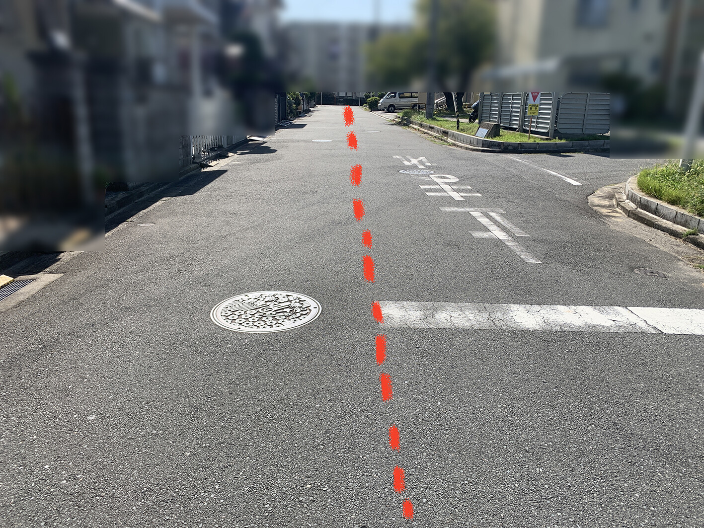 道に、点線のように境界線のシルシはついているのか?と