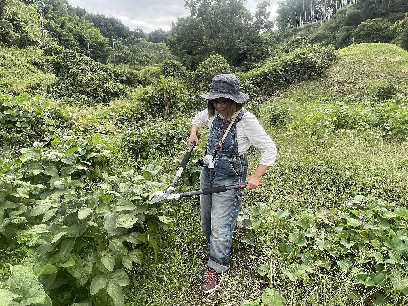 収穫のあとは、余分な葉っぱをチョキチョキ切り落とします。