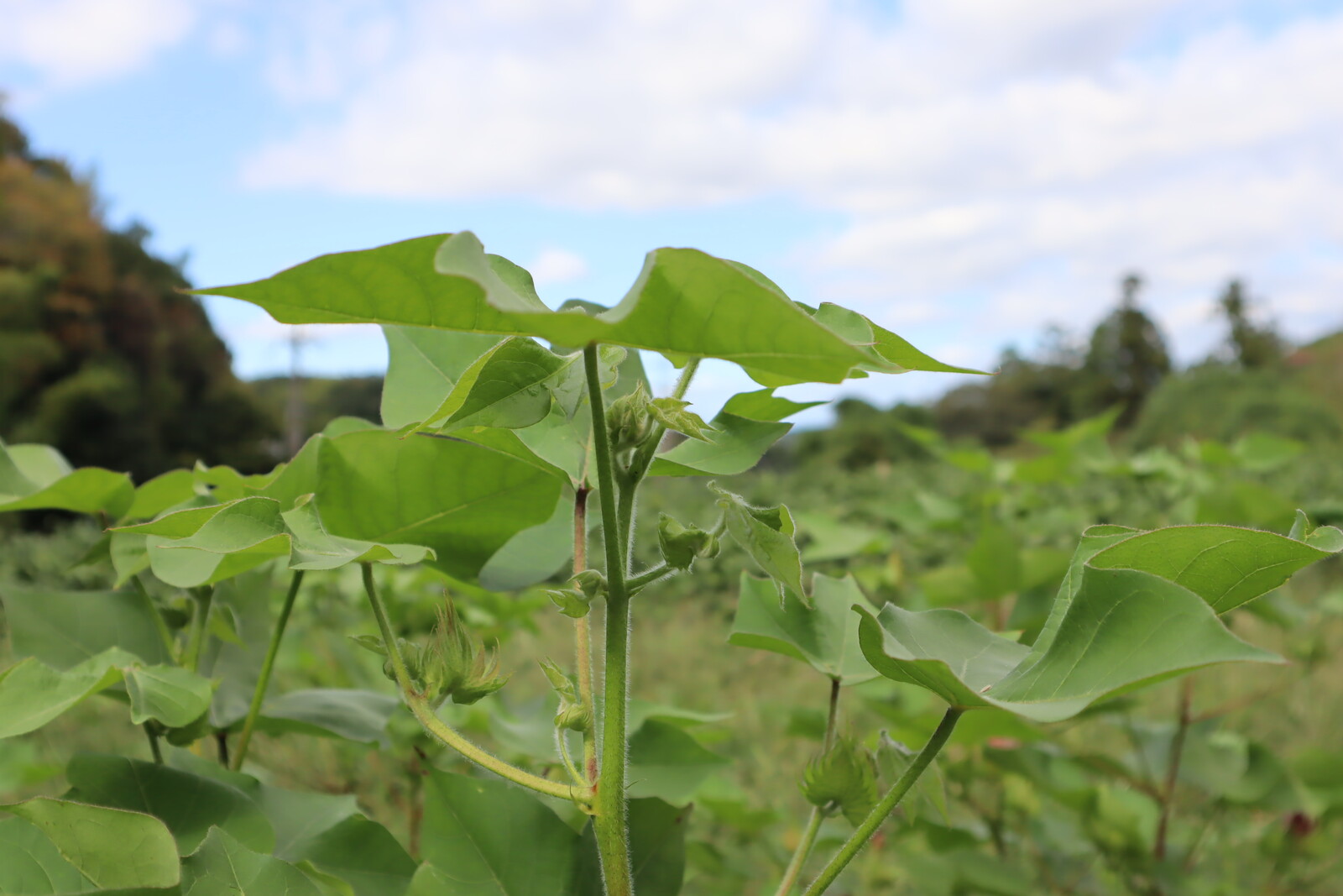 この蕾が膨らんで花が咲いてその花が散ったら実になり、中に綿ができます。