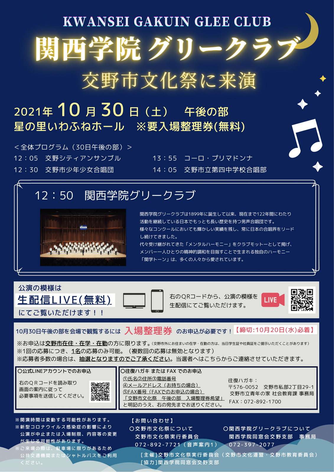 関学の合唱団もやってくる!交野万博っていうのがこの土日で開催!音楽や発表などをオンラインで見れるみたい!
