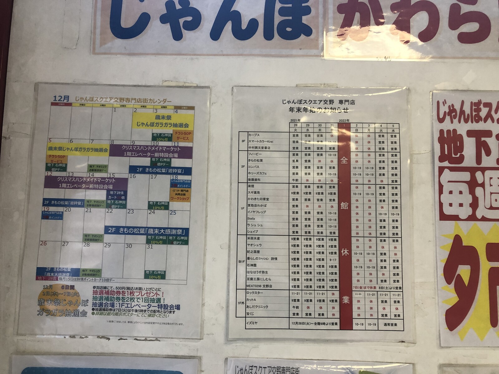 じゃんぼスクエア交野の専門店店については、同じく1日は休みですが、一部店舗は2日から営業されるようです。
