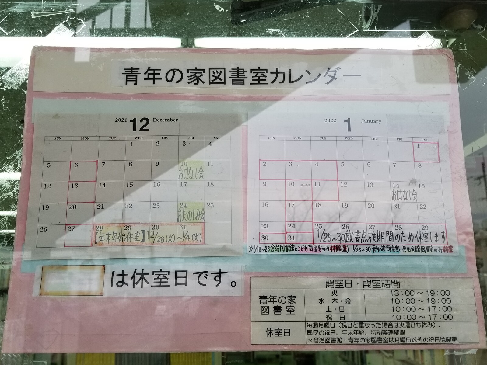 どうやら青年の家図書室だけでなく、交野市内の図書館全てで臨時休館される期間があるようです。