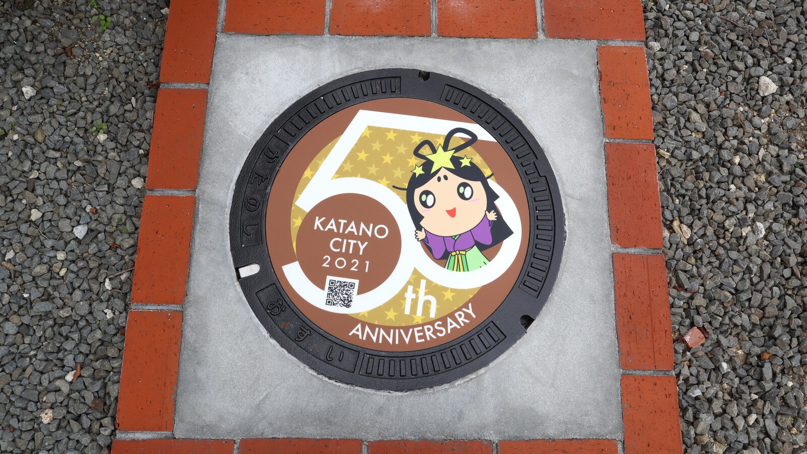 その市政50周年を記念した取り組みのひとつとして、2021年9月に記念マンホールがJR学研都市線 河内磐船駅の前に設置されました。