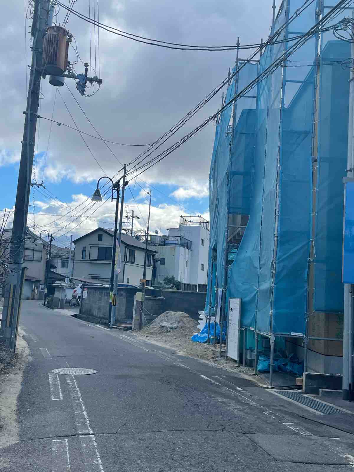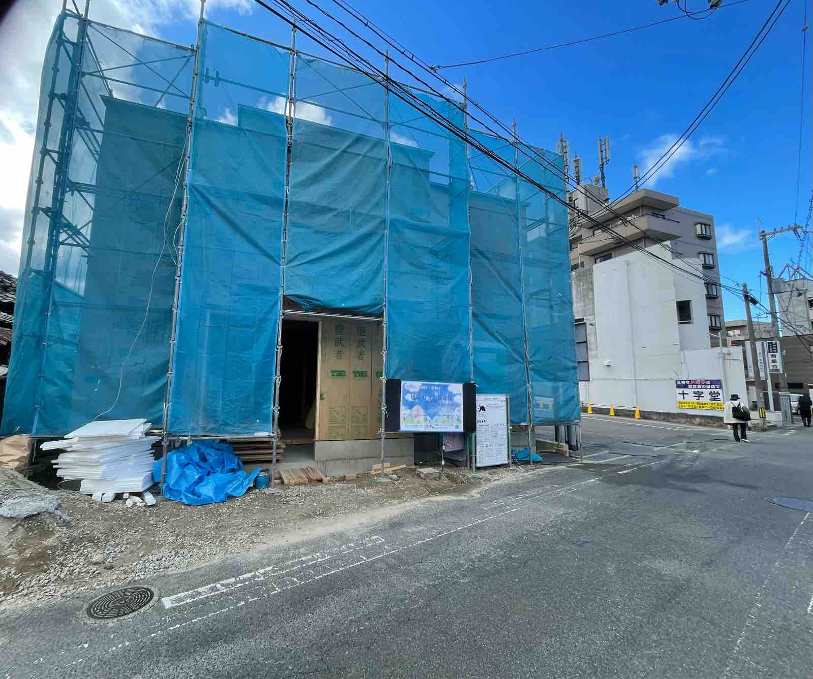 十字堂メガネ店、学習塾を過ぎたところに、新しい建物が出来上がりつつあります。