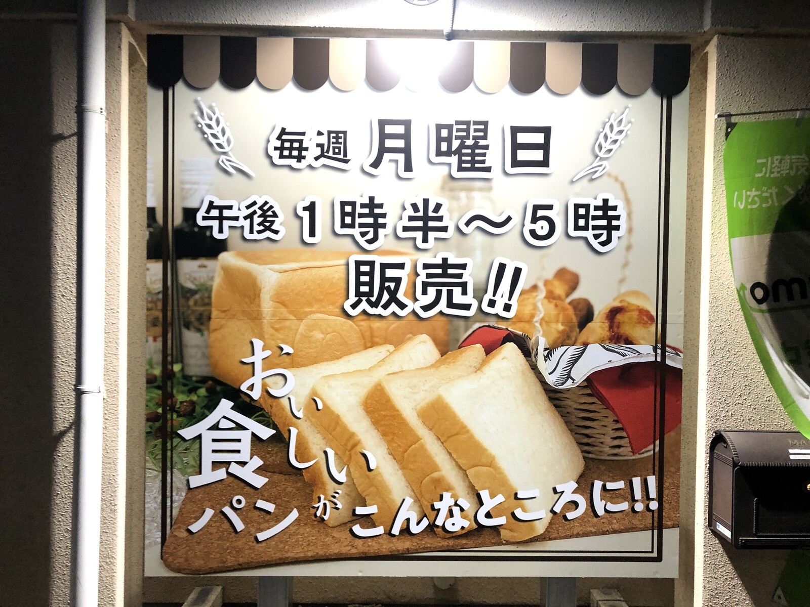 毎週月曜日の13時半から17時の間、ここで食パンの販売があるようです。