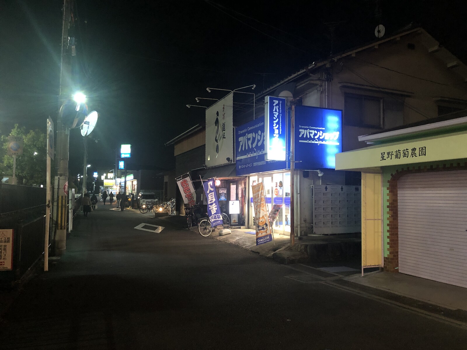 改札を出たら右→まっすぐ→ちょい右→まっすぐでJR河内磐船駅と京阪電車の河内森駅をつなぐ道にいることになります。