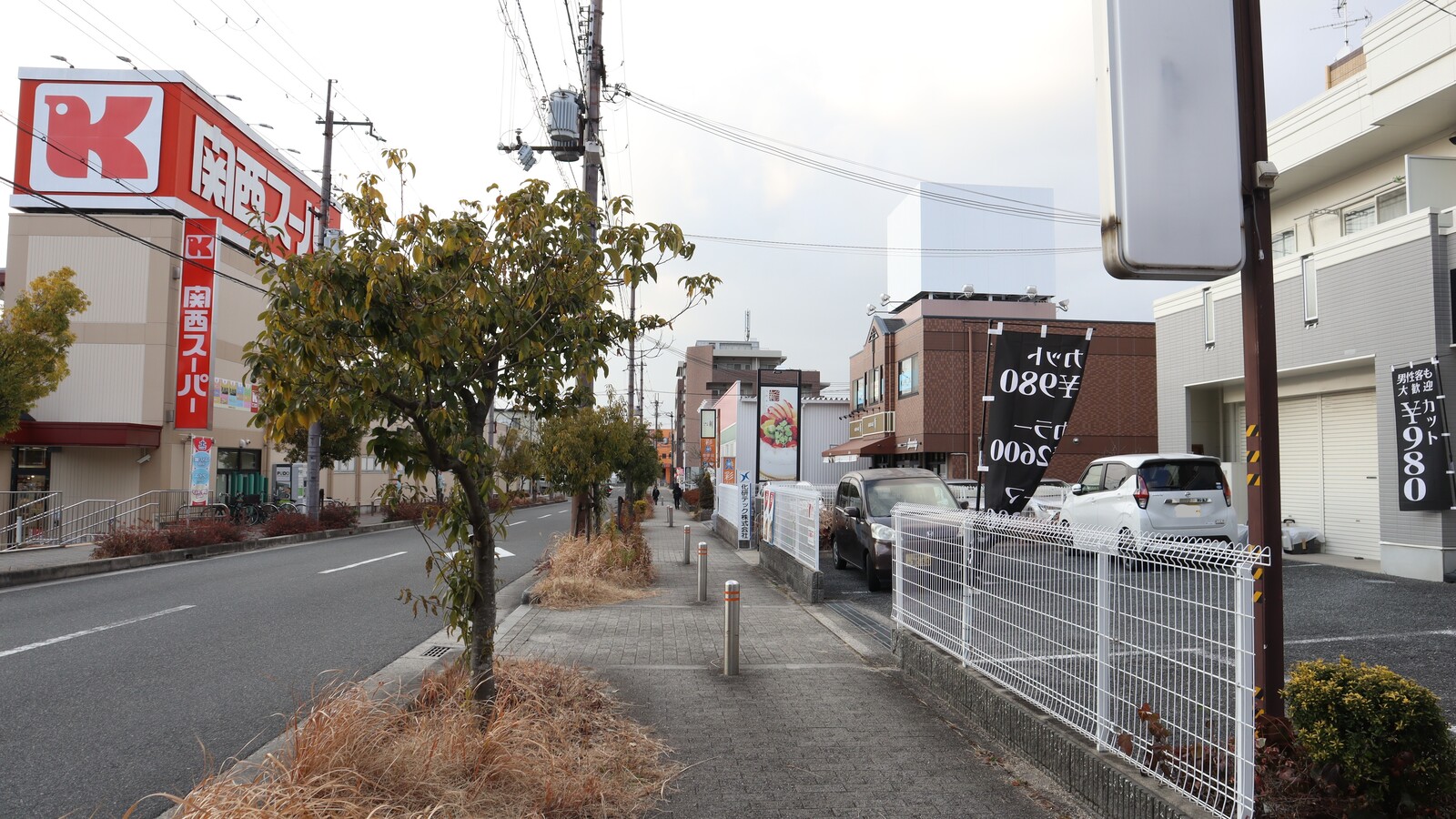 道路をはさんで向こう側には関西スーパー河内磐船店があります。
