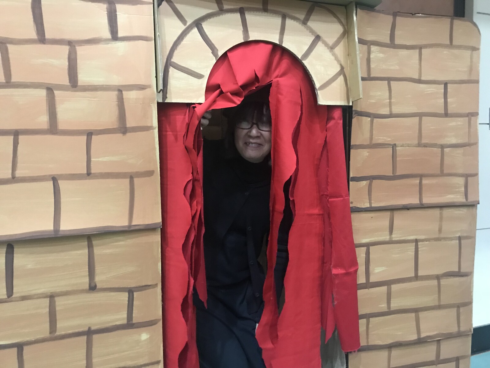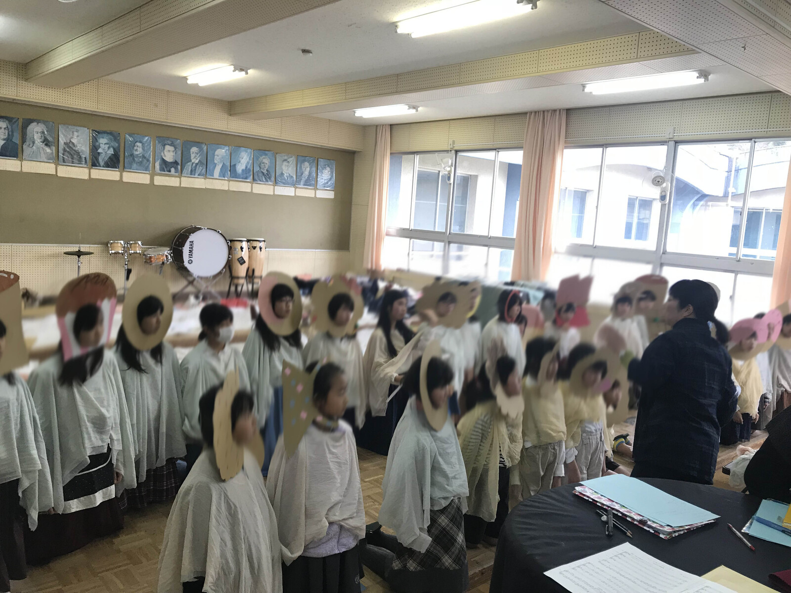 地元の小学生、中学生と、舞台で装着する「お菓子のかぶりもの」を作るワークショップをしたり、