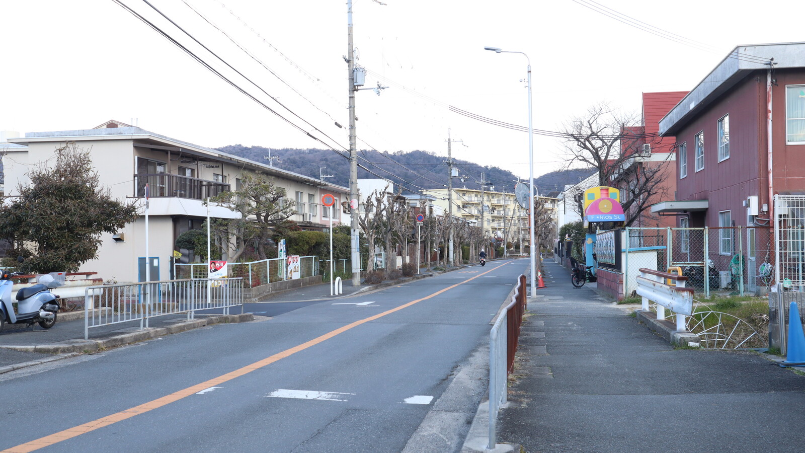 近くにはふじがお幼稚園があり、その先をまっすぐ進むとアカカベドラッグストア藤が尾店などがある大きな通りに出ます。