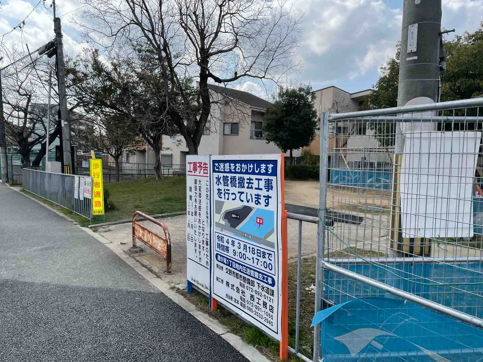 「水管橋撤去工事」とのことで、3月18日には終了すると書いてあります。