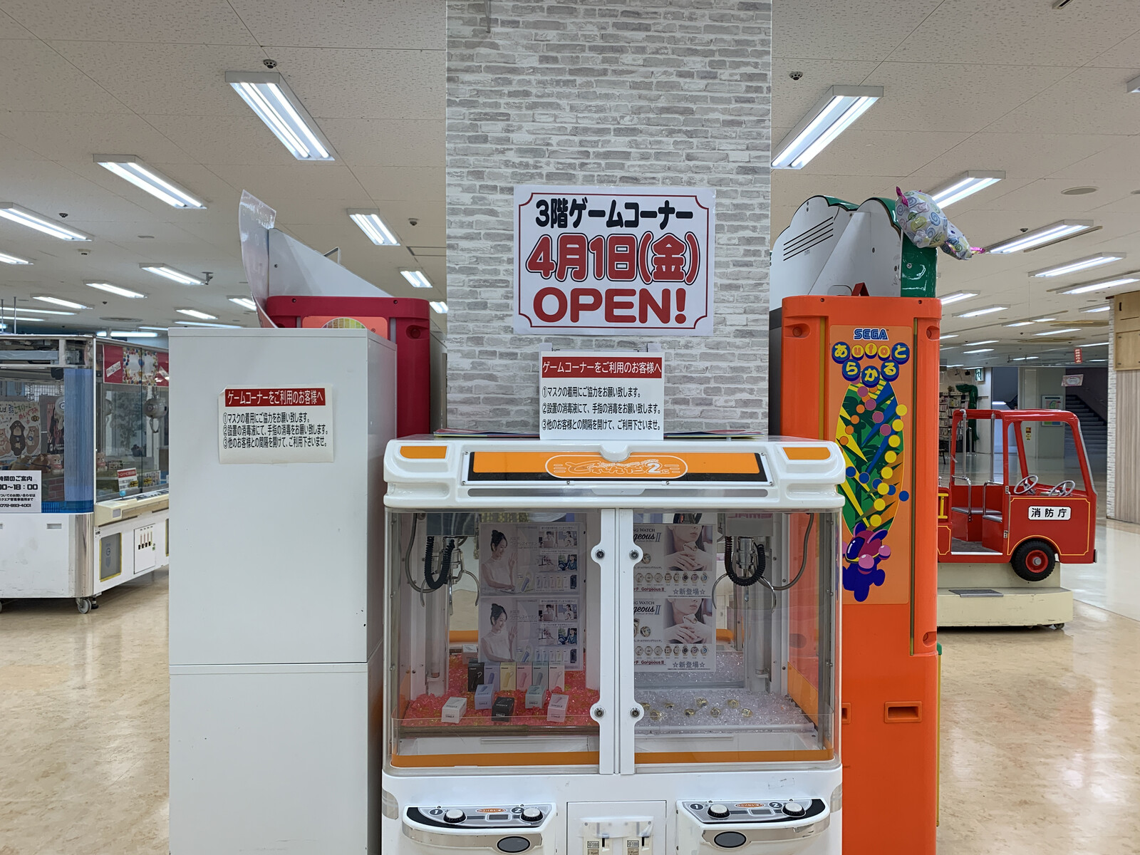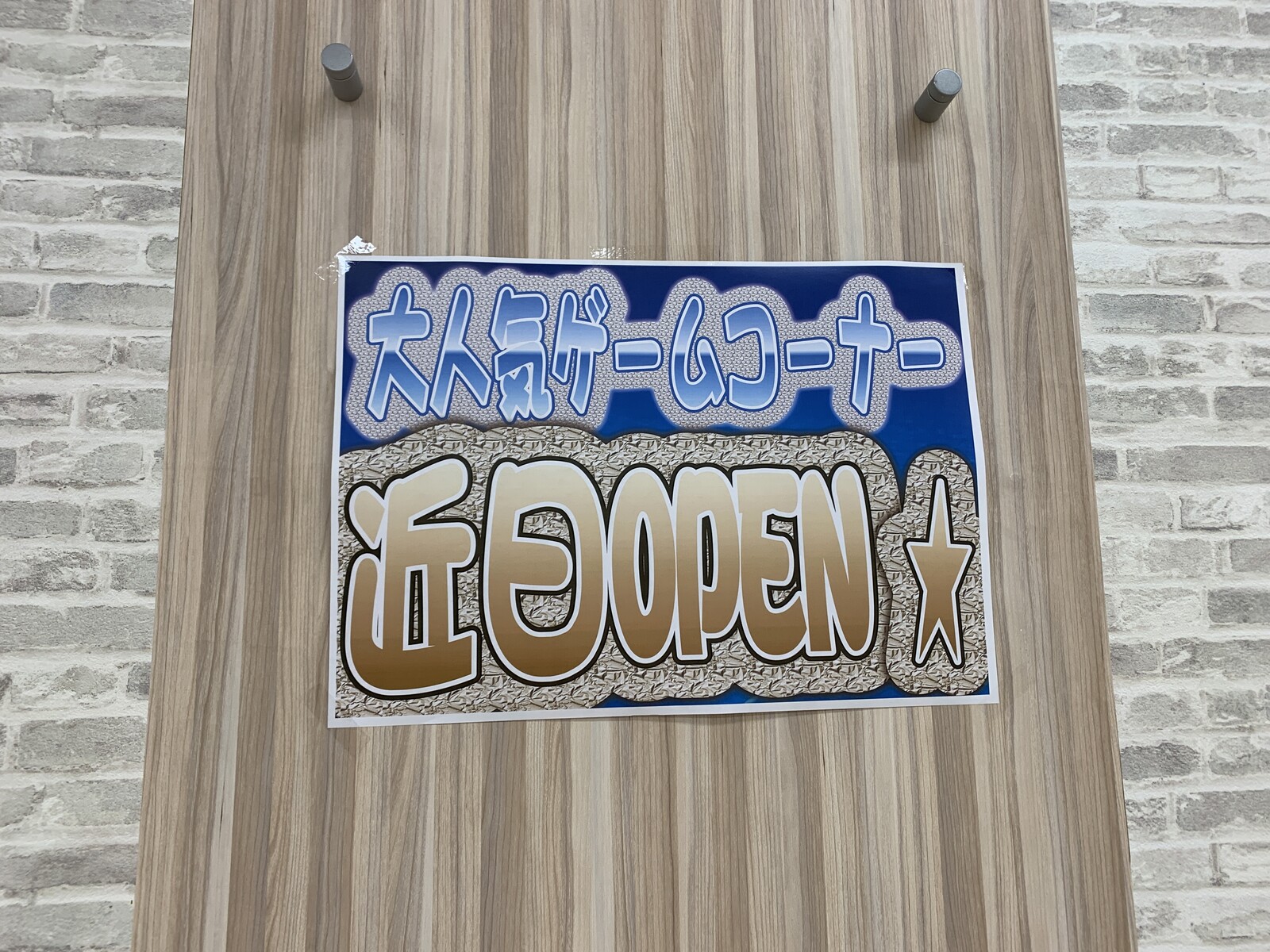 3月中頃には「大人気ゲームコーナー 近日OPEN」とのことで貼り紙が掲示されていました。