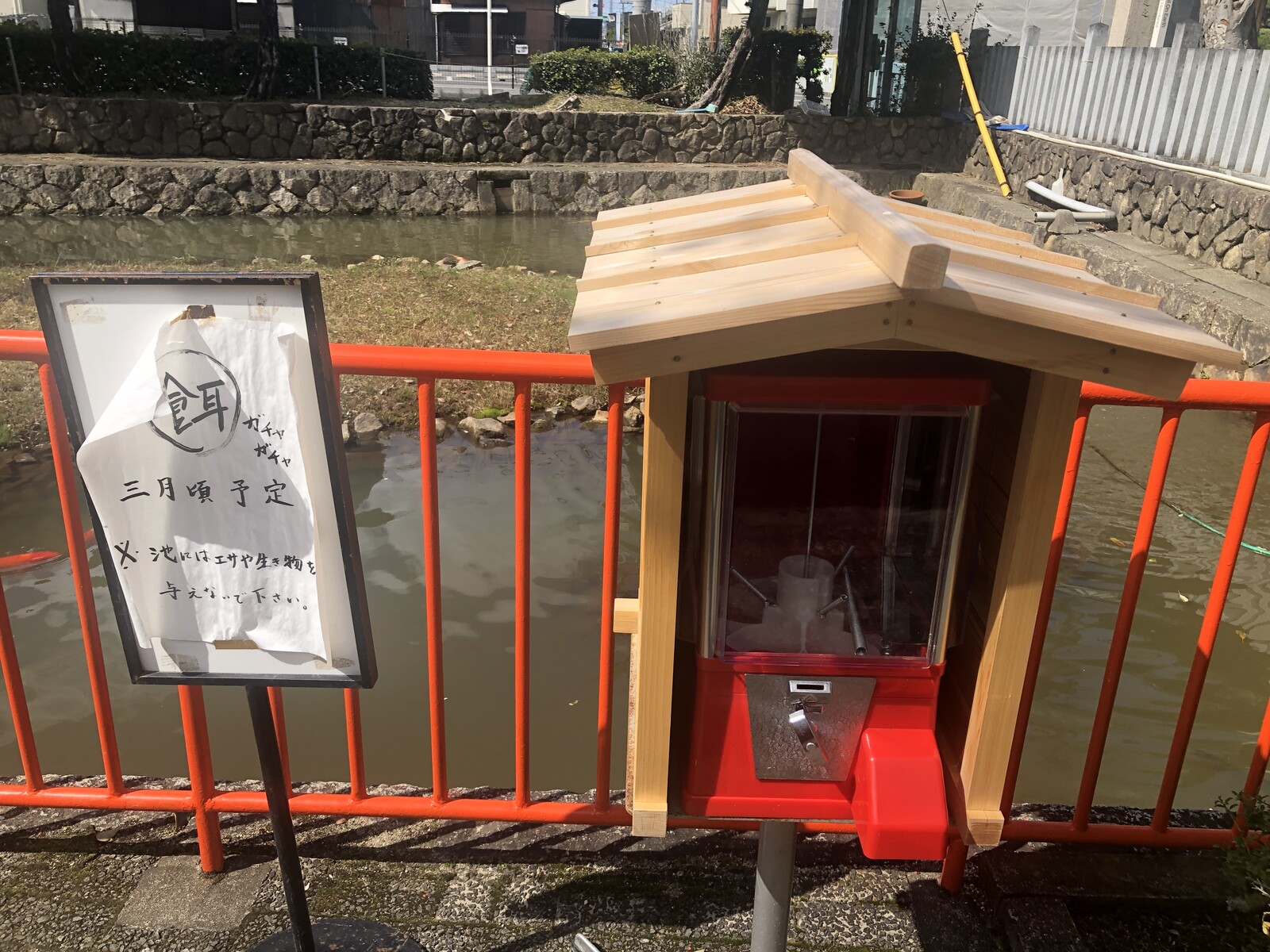 ただ違和感なく溶け込んでいるのは、文字の雰囲気だけで、その横の餌ガチャガチャのマシーンはかなりの異彩を放っていました。