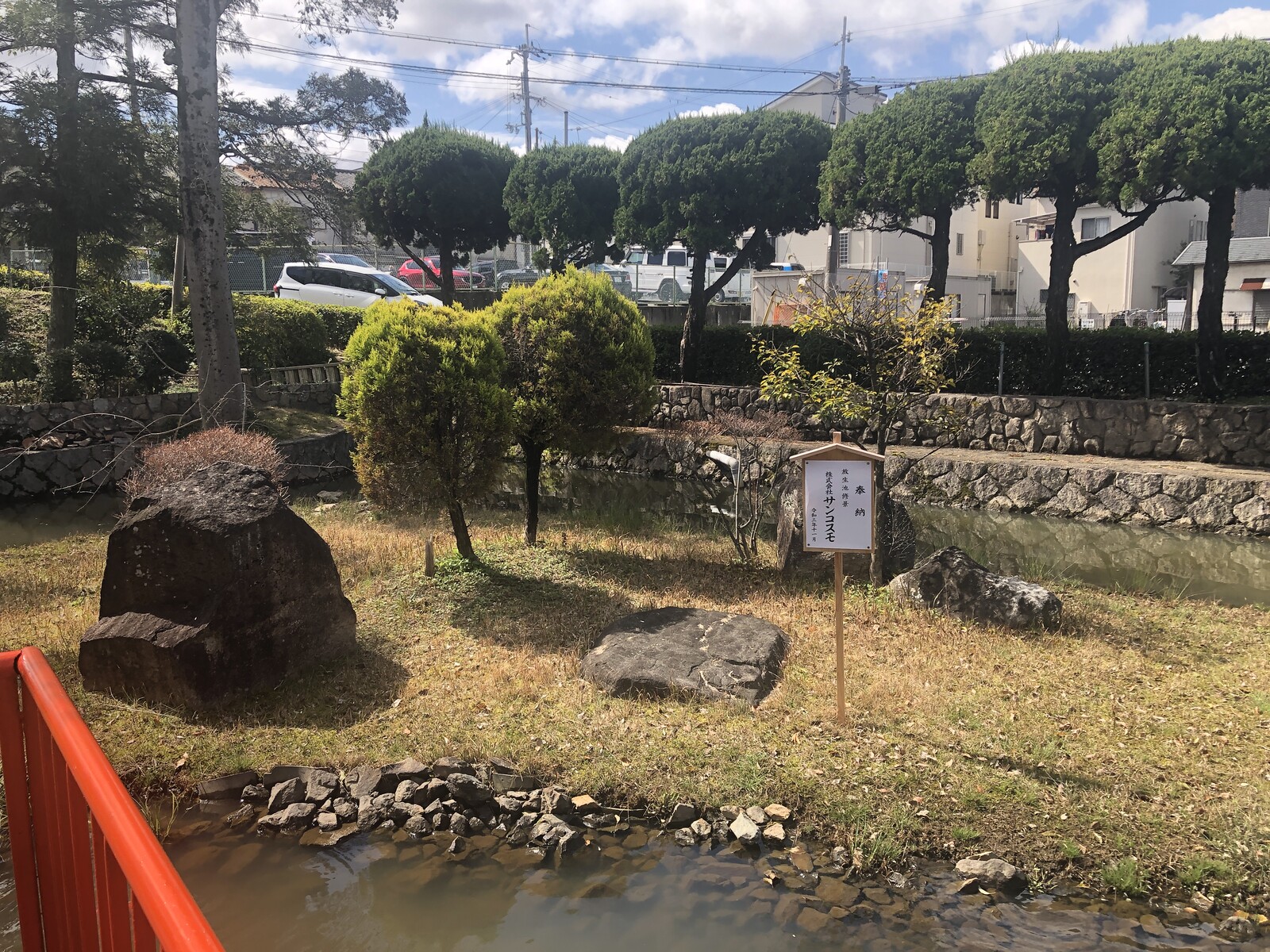 道沿いの大鳥居をくぐってすぐ右手に池があります。
