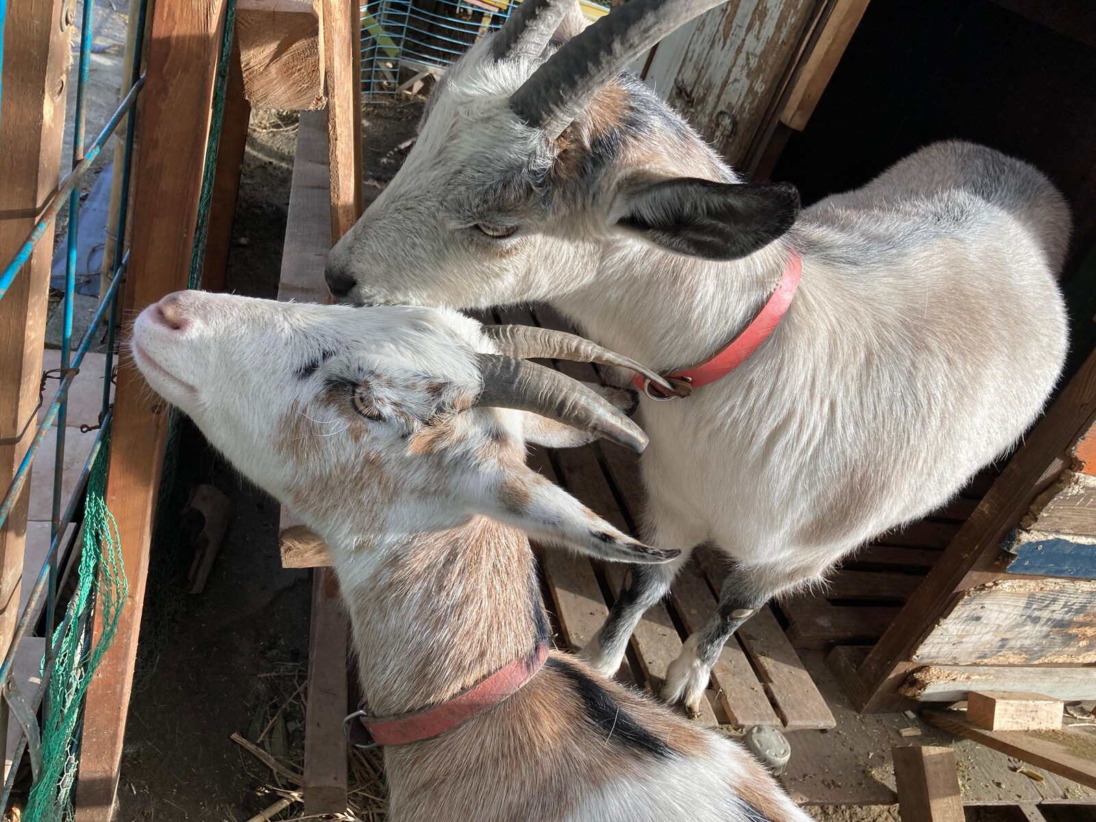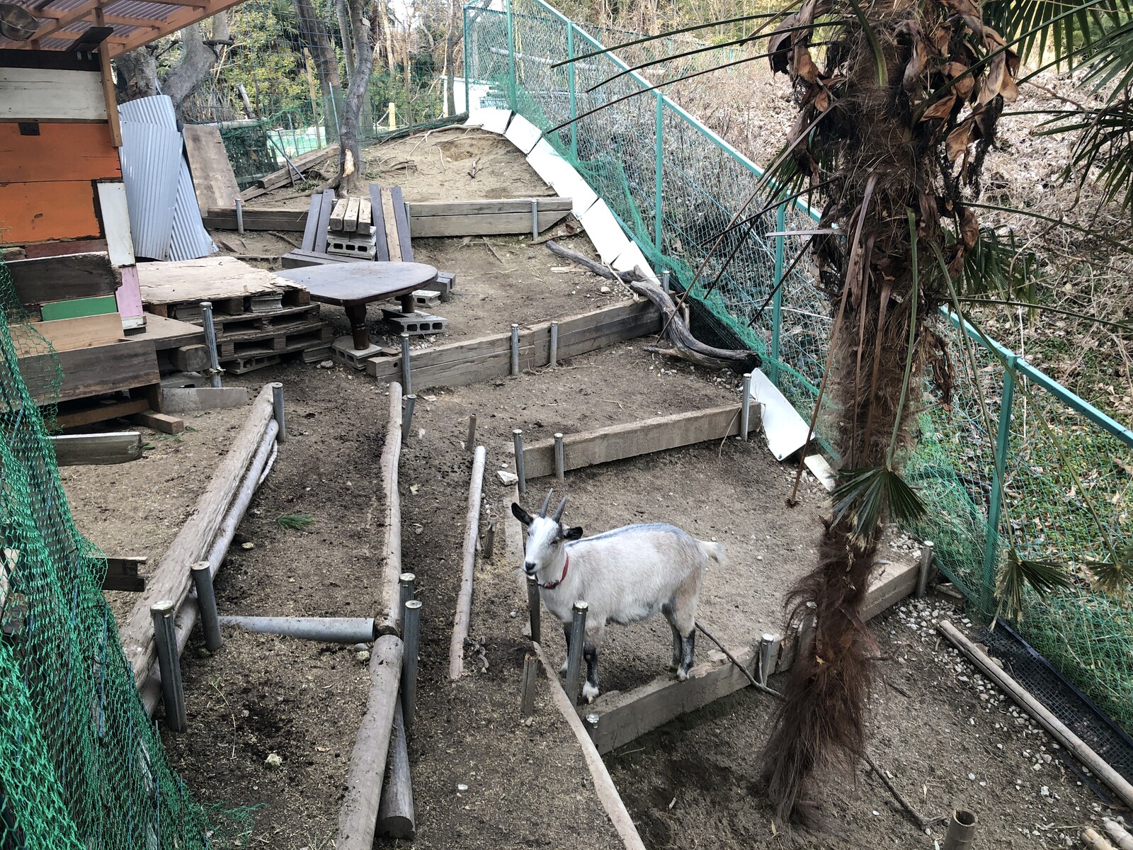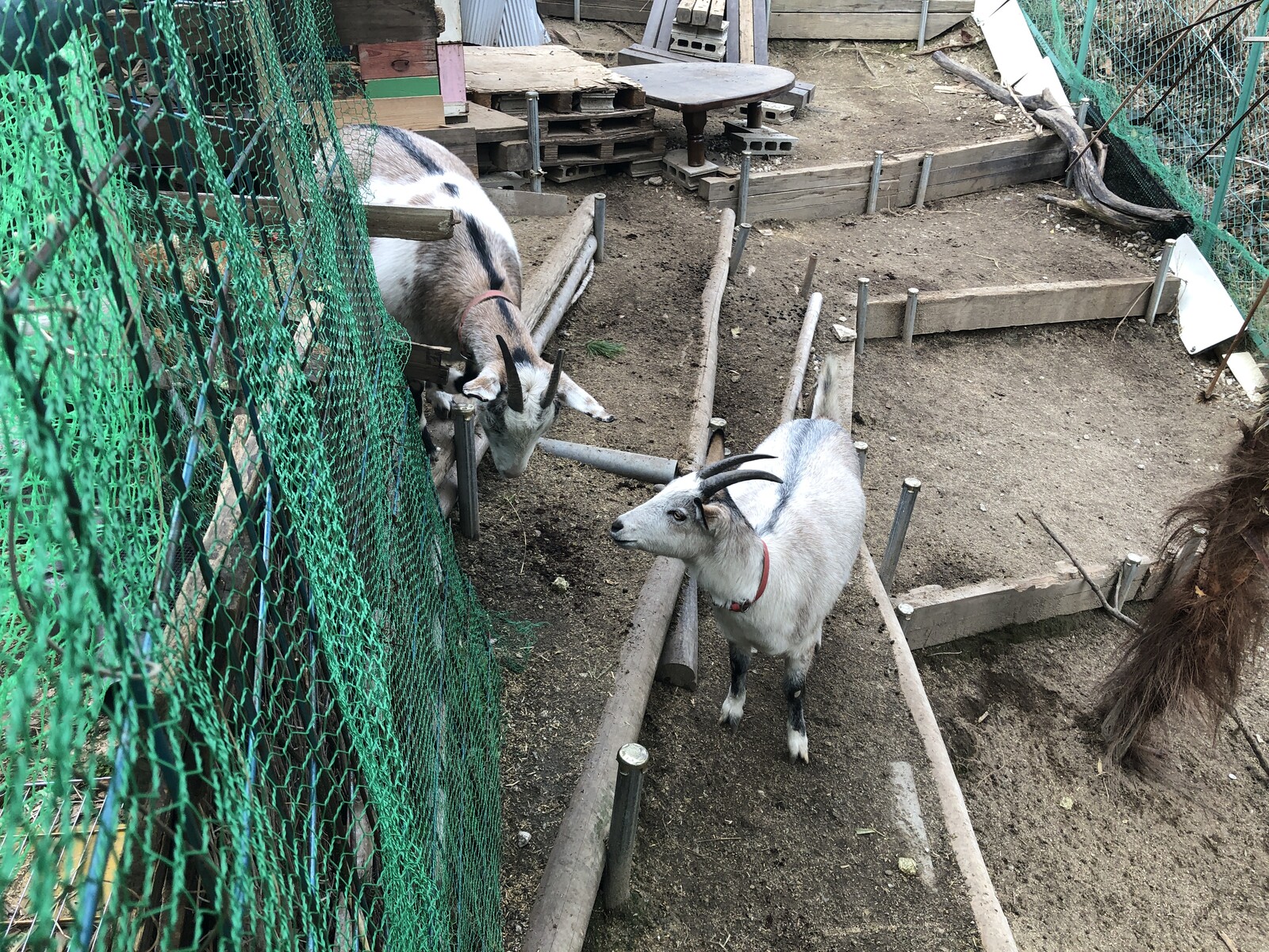敷地内の一角が斜面になっていてそこにしっかりとした飼育施設が作られていて、ヤギさんと鶏さんがいらっしゃいました。メーメーメーメー