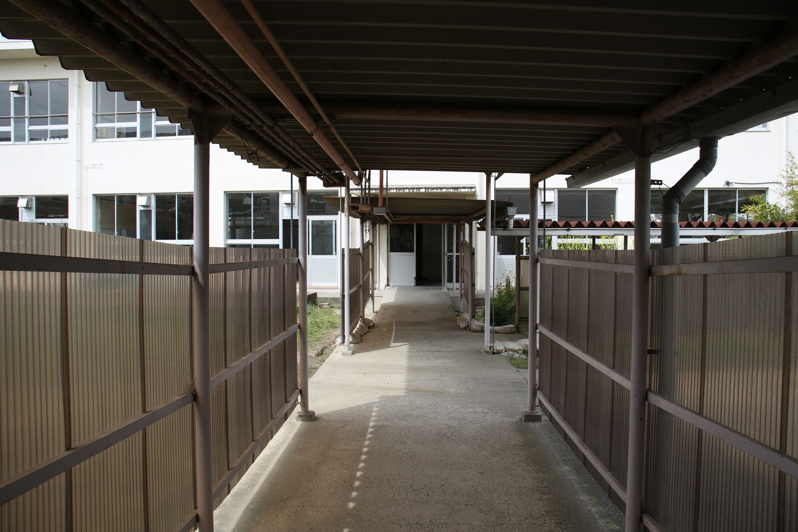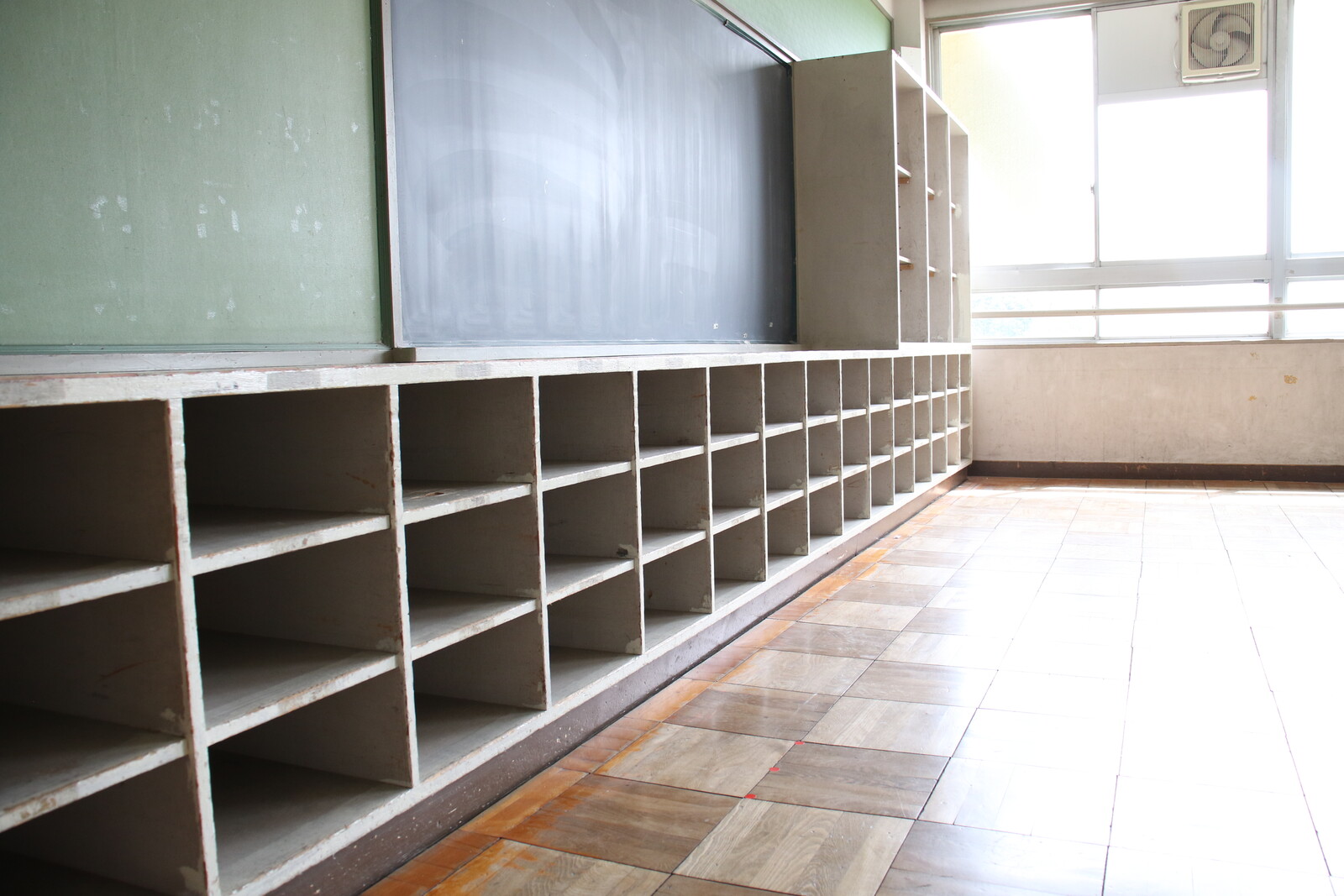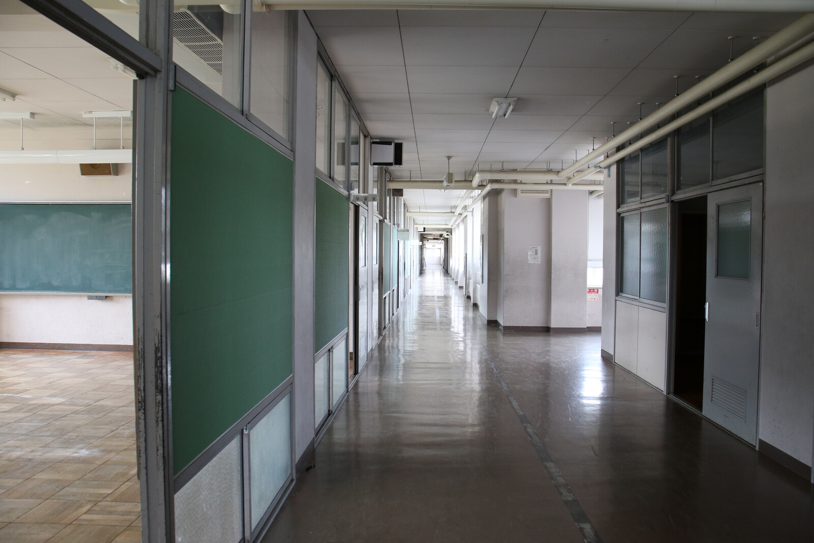 校内には、本来あるべき机や椅子は既に撤去されていました。